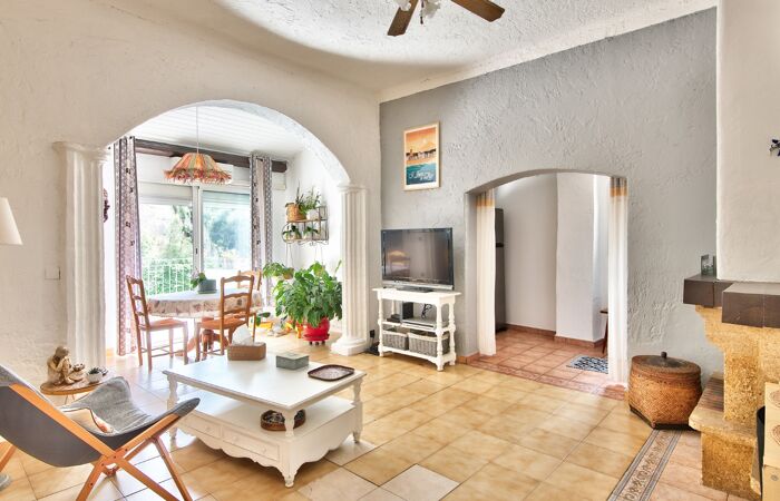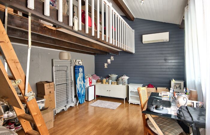 La maison s'articule autour d'une belle pièce de vie avec hauteur sous plafond et cheminée, d'une cuisine indépendante avec un cellier, de deux chambres dont une avec mezzanine, d'un espace bureau, d'une salle de bains avec WC et d'un WC indépendant entièrement équipée d'une climatisation réversible.Â