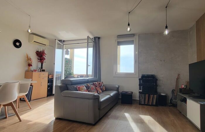 Corniche Fleurie 3 pièces avec terrasse Dans une agréable résidence, superbe Duplex dominant la ville, avec vue dégagée. Composé au niveau inférieur d'un grand séjour sur terrasse ensoleillée, d'une cuisine équipée, au niveau supérieur deux chambres, salle de bains, toilette séparé. Ce bien atypique propose de belles prestations avec la climatisation réversible, volets roulants électrique, double vitrage. Possibilité d'acquérir un garage en plus du prix. Pas de travaux à prévoir Idéal famille, terrain de tennis, de pétanque, jardin d’enfant, potager, espace vert. Le bien bénéficie d’un très bon diagnostic de performance énergétique. Les informations sur les risques auxquels ce bien est exposé sont disponibles sur le site Géorisques : georisques.gouv.fr Pour toutes demandes d'informations et visite, merci de contacter Carl NOCENTINI au +33651186746