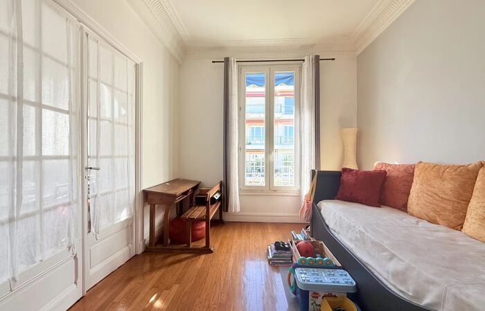 Nice - Parc Impérial - Dernier étage, 3 pièces, vue dégagée sur les tennis Au deuxième et dernier étage d'un magnifique immeuble datant de 1927, idéalement situé à proximité immédiate de toutes les commodités et à seulement 15 minutes à pied du célèbre marché de la Libération, superbe 3 pièces de 64 m² en excellent état. L’appartement se compose d’un séjour chaleureux avec cheminée, de deux chambres dont une avec un grand placard intégré, d’une cuisine indépendante, d’une salle d’eau et de toilettes séparées. Situé dans un quartier très prisé, ce bien bénéficie d’une vue dégagée sur les courts de tennis du Parc Impérial, d’un aperçu mer et du charme authentique de l’ancien : parquet, moulures, cheminée, et d'une belle hauteur sous plafond de 3 mètres. Cet appartement rare sur le marché est vendu avec une cave au sous-sol de l'immeuble. Copropriété : 12 lots principaux Charges de copropriété : environ 1212euros/an Procédure : Pas de procédure en cours à notre connaissance 'Les informations sur les risques auxquels ce bien est exposé sont disponibles sur le site Géorisques : georisques.gouv.fr.' Pour toutes demandes d'informations et visite, merci de contacter Severine FERRAND au +33662180723