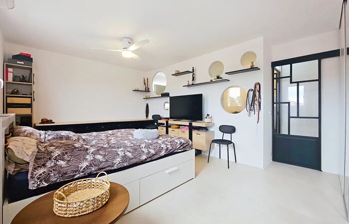 SAINT PIERRE DE FERIC-2/3 PIECES-TERRASSE SUD OUEST-VUE VERDURE-CALME ABSOLU Dans le quartier résidentiel recherché de Saint-Pierre-de-Féric, à seulement 10 minutes du centre-ville, découvrez ce splendide appartement 2/3 pièces entièrement rénové, situé au sein d’une résidence de très bon standing, parfaitement entretenue et récemment ravalée. Véritable havre de paix, ce bien offre un cadre de vie privilégié, au calme absolu, dans un environnement verdoyant. L’appartement se compose d’un vaste séjour avec cuisine américaine d’environ 30 m², baigné de lumière et ouvert sur une agréable terrasse exposée Sud-Ouest. Depuis celle-ci, vous profitez d’une vue dégagée sur la verdure, sans vis-à-vis, ainsi que d’une trouée mer. Chaque soir, les couchers de soleil offrent un spectacle naturel remarquable. Initialement conçu en 3 pièces, l’appartement a été transformé en un spacieux 2 pièces, proposant aujourd’hui une superbe chambre de maître de 23 m². Il sera très facile de recréer une seconde chambre selon vos besoins. La très grande salle de douches, rénovée avec goût et matériaux de qualité, offre un confort haut de gamme. L’ensemble du bien est entièrement climatisé, garantissant un confort optimal été comme hiver. Les prestations, les volumes et la luminosité en font un bien rare sur le secteur. La résidence dispose de stationnements collectifs et la possibilité d’acquérir un garage en sus du prix. Un bien idéal pour une résidence principale paisible, à proximité immédiate du centre-ville, des écoles et des commodités. Pour toutes demandes d'informations et visite, merci de contacter Philippe VAN DEN BROECK au +33699481012