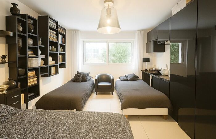 - Deux chambres avec rangements, dont une avec salle de douche attenante.