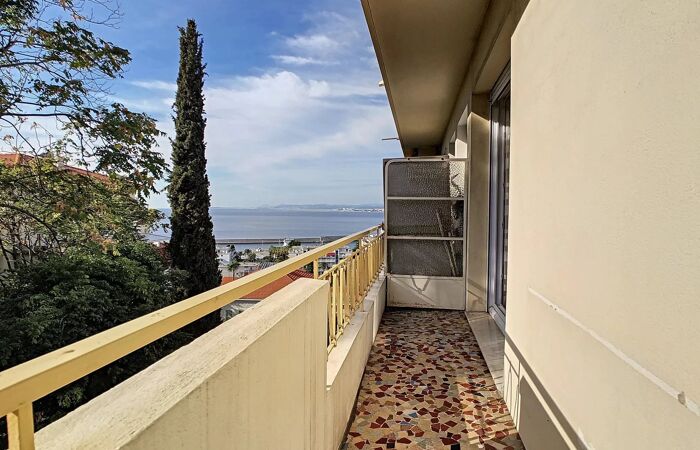 Port/Mont Boron : 61m2 avec balcon/terrasse vue mer latérale Dans un immeuble de standing avec ascenseur, idéalement situé avenue Urbain Bosio, à proximité immédiate des commerces et des transports (tramway à moins de 10 minutes à pied), grand 2 pièces de 61 m² en très bon état, situé au 4ᵉ étage (avant dernier).