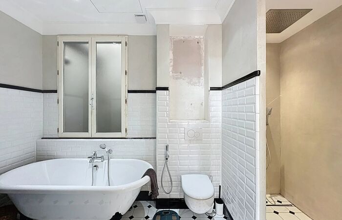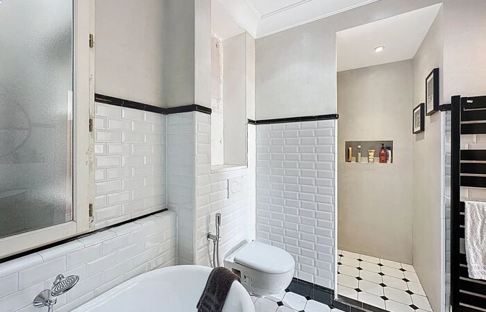 triple vitrage , parquet en chevron, une mansarde au dessus de la chambre ( possibilité accès avec escalier) une cave en sous-sol , un jardin dans immeuble bourgeois classée dont étanchéité du toit de l'immeuble à était refaite.