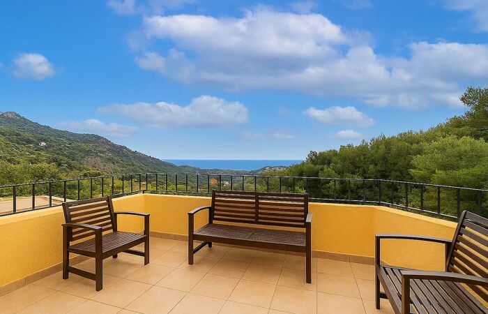 Cette agréable MAISON nous offre dès l'entrée une terrasse avec belle vue mer, au 1er niveau une belle pièce de vie de 45 m2 ouvrant sur terrasse vue mer, et une seconde terrasse de 55 m2 dégagée sur la verdure. Cuisine semi ouverte et toilette indépendante.