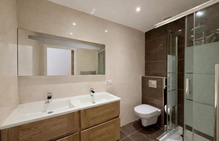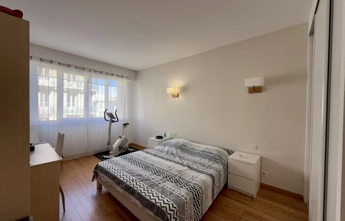 En parfait état, cet appartement séduit dès l’entrée par ses volumes généreux et sa luminosité. Il se compose d’une vaste entrée avec placards de rangement, d'un spacieux séjour ouvrant sur une agréable terrasse de 12 m² exposée plein sud, au calme sur cour. Les deux grandes chambres de 15,38 et 16,66 m² offrent un confort optimal, chacune bénéficiant de beaux espaces de rangement. Vous disposerez également de deux salles d’eau avec WC, un véritable atout en résidence principale comme en pied-à-terre.