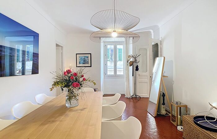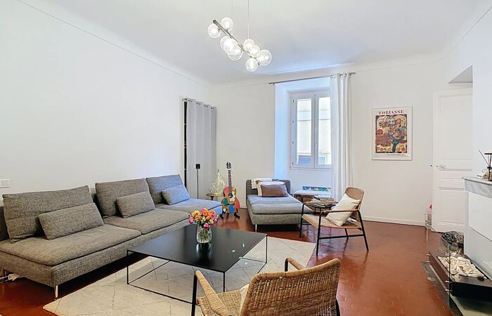 Vieux Nice - Opéra : 4 pièces de 103 m2 Emplacement premium dans la vieille ville de Nice ! Proche de l'Opéra, des plages et du cours Saleya, cet appartement au charme incontestable saura vous séduire de par ses volumes et son atmosphère : vaste séjour, doublé d'une salle à manger, deux chambres aux plafonds voutés (style médiéval), deux salles d'eau, deux wc, une cuisine indépendante et - en bonus - une terrasse de 7m2 avec possibilité de végétaliser un toit plat dont vous avez la jouissance...