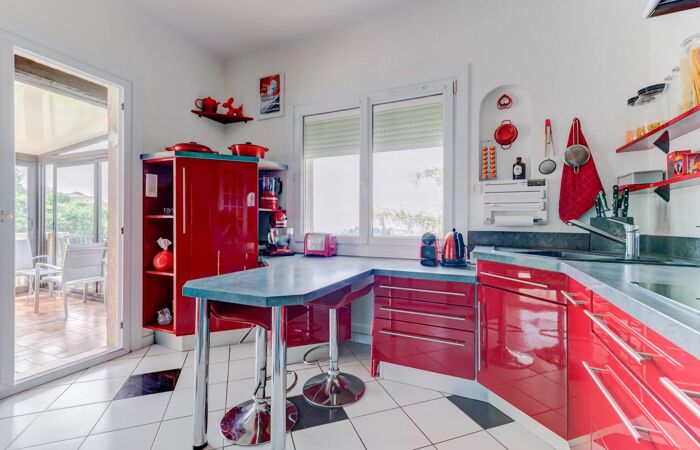 En très bon état général, la maison s’étend sur deux niveaux et offre de beaux volumes intérieurs. Vous y trouverez un vaste salon principal, un second salon plus intime avec cheminée, une salle à manger conviviale, ainsi qu’une cuisine prolongée par une grande véranda baignée de lumière naturelle.