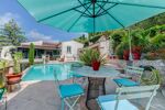 À l’extérieur, vous profiterez pleinement d'une superbe piscine à débordement avec jacuzzi intégré, plusieurs terrasses aux ambiances variées, une agréable cuisine d’été avec four à pizza à bois, un terrain de pétanque, ainsi qu'un jardin arboré d'arbres fruitiers.