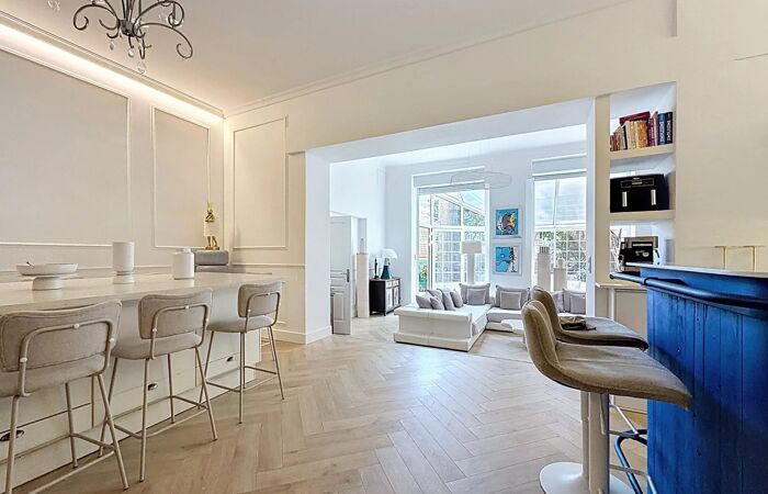 CANNES - LOFT D’EXCEPTION AVEC JARDIN À DEUX PAS DU VIEUX-PORT Idéalement situé à deux pas du mythique Vieux-Port de Cannes, dans un environnement au calme absolu, découvrez ce magnifique loft de 140 m² au sol et 108m2 carrez entièrement rénové avec des matériaux haut de gamme.
