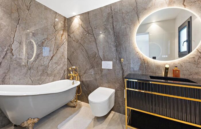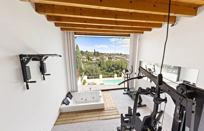 - Enfin une salle de sport avec jacuzzi et vue piscine viennent compléter les prestations de la villa.