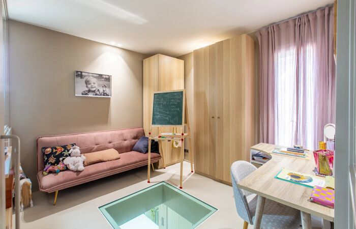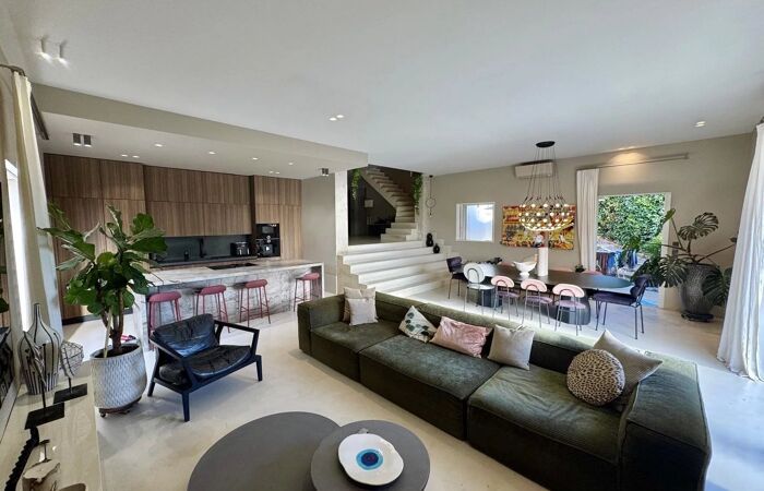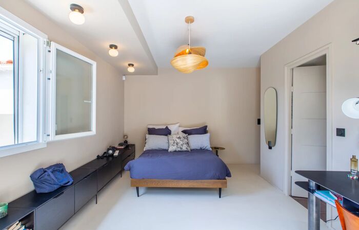 Au rez-de-chaussée, un vaste espace de vie de 60 m², baigné de lumière grâce à son exposition sud-ouest, s’ouvre sur de nombreuses terrasses, idéales pour profiter pleinement de l’extérieur.