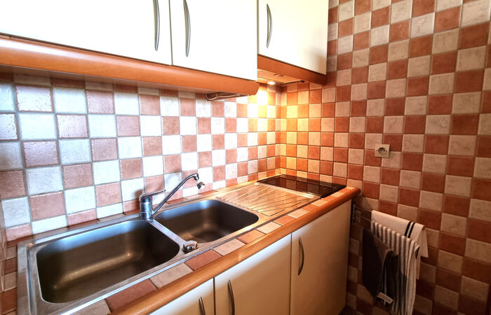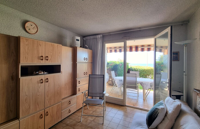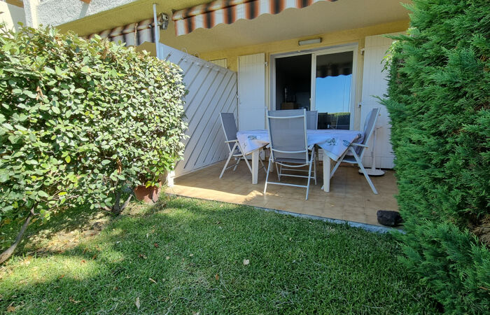 Situé dans une résidence fermée face à la mer cet apartement de deux pièces est ideal comme pied à terre ou bien comme investissement. Il dispose d'une belle terrasse et d'un petit jardin très apréciable, d'une cuisine équipée et surtout d'un garage en sous sol.