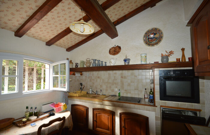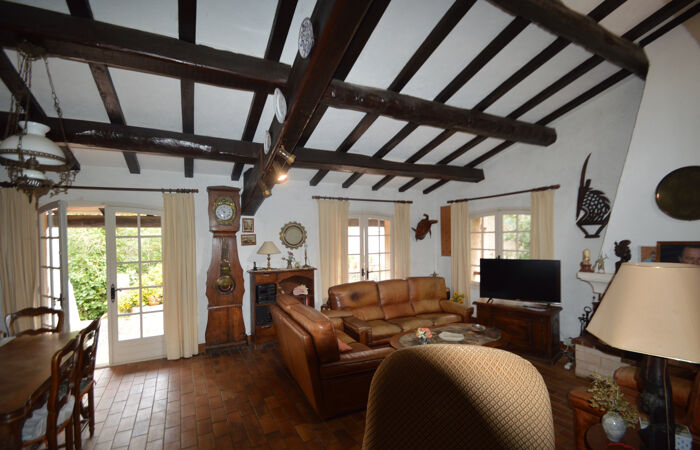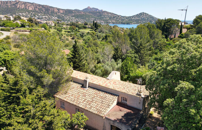 Située dans un domaine privé de standing proche de la plage, au coeur d'un cadre privilégié entre mer et Esterel cette charmante villa provençale de 140m2 et 6 pièces profite d'un environnement calme et verdoyant sur un terrain de 2260m2. La maison à rénover dispose d'une surface total de 170m2 incluant les dépendances et le garage. De plain pied, la partie principale de la maison est composée d'un séjour, d'une véranda, d'une cuisine indépendante, de 3 chambres, d'une salle de bains et d'un WC et donne accès à un garage. Le rez-de-jardin est aménagé en appartement indépendant et propose un coin nuit, une cuisinette et une salle de douche avec WC ainsi qu'une terrasse. Propriété nécessitant des travaux mais offrant un potentiel d'évolution réel, dans un environnement agréable.
