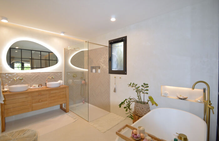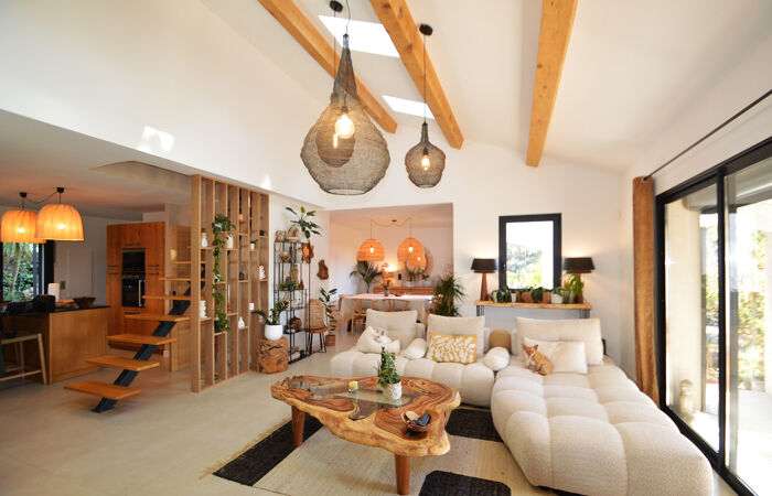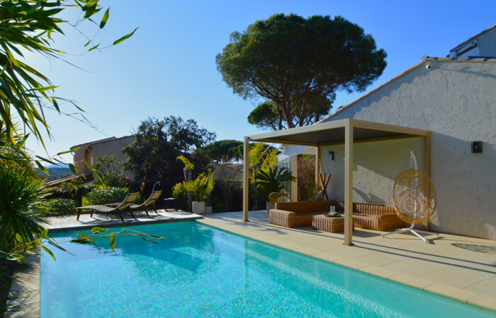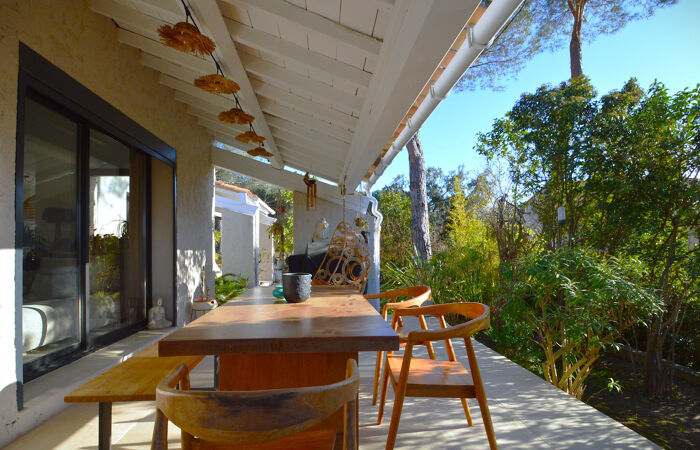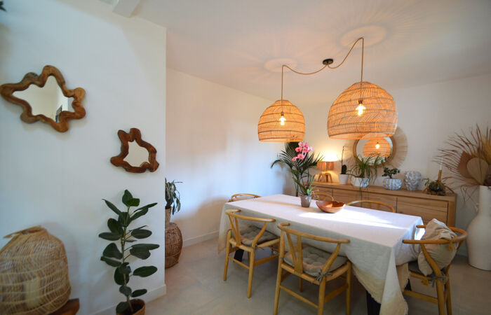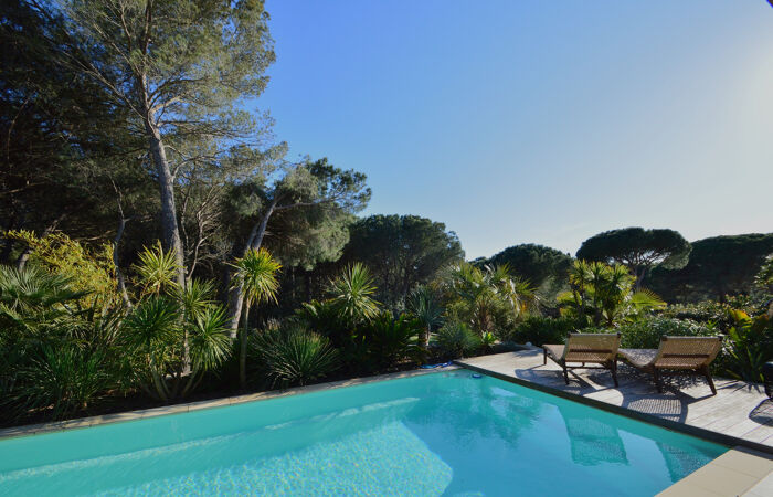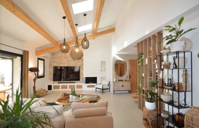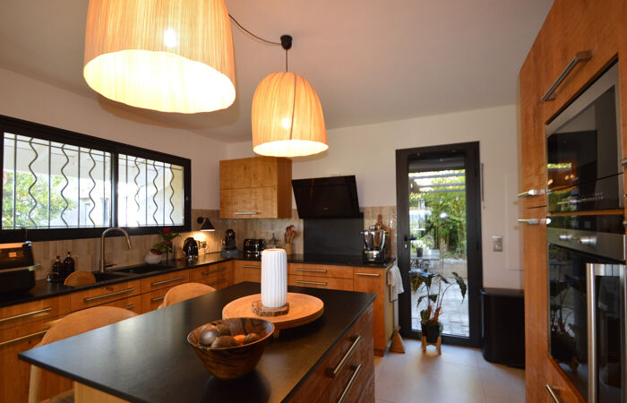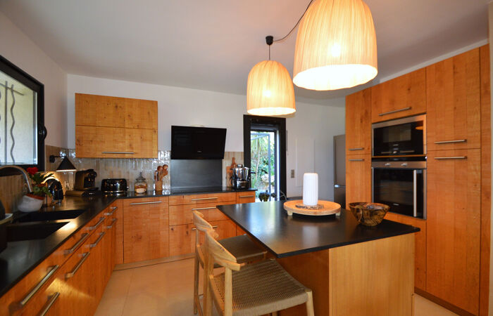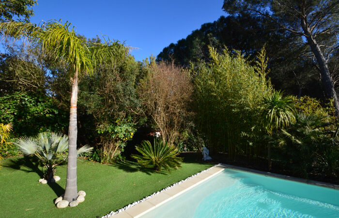 Découvrez cette superbe villa familiale de 4/5 pièces et 142m2 située au calme à Sainte-Brigitte, dotée de prestations intérieures de qualité et d'un beau jardin avec piscine en limite d'espace vert protégé. La maison rénovée en totalité avec des matériaux de choix est clef en mains, elle bénéficie de nombreux atouts tels qu'une vue sur le rocher de Roquebrune, de nombreuses terrasses, une superbe suite parentale de plain pieds avec salle de bains et dressing, un séjour cuisine de 65m2 avec puits de lumière et cheminée. A l'étage supérieur on retrouve deux chambres de belle surface, une salle d'eau, un WC et un solarium. Le jardin complanté et entretenu avec minutie offre un cadre luxuriant et intime. La large pergola coté piscine permet de profiter des extérieurs avec tranquilité en toute saison. Un garage de 32m2 et des espaces de parking viennent compléter ce bien,