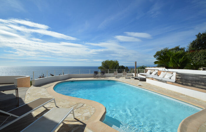 Située dans un domaine privé et fermé de standing, celle villa de 5 pièces vous offre une vue époustouflante sur la mer. Grace à une exposition plein sud, et bénéficiant de grandes ouverture, elle bénéficie d'une luminosité et d'un ensoleillement optimal. Elle dispose de 4 chambres et de 3 salles d'eau. Rénovée at agrandie il y a quelques années, elle dispose de belles prestations.
