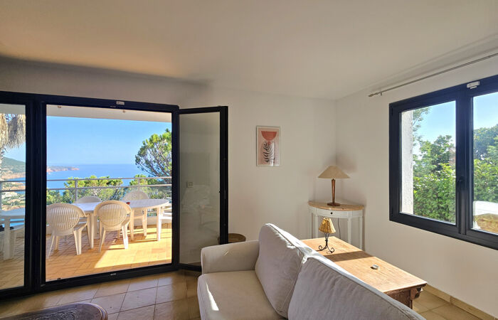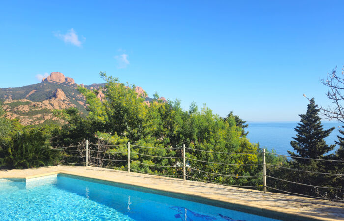 Située en position dominante avec une vue mer incroyable et surplombant la baie d'Anthéor cette belle villa à l'allure moderne, de 206m2 et 7/8 pièces, avec piscine s'octroie un panorama spectaculaire sur le massif du Cap Roux. La maison rénové et répartie sur deux niveaux profite de beaux volumes ainsi que d'ouvertures intéressantes offrant luminosité et transparence. Avec de belles terrasses et une véranda orientée vers les levés de soleil la villa se dote de formidables espaces extérieurs complantés. La communication entre les niveaux s'effectue par l'intérieur ou par l'extérieur et donne la possibilité de vivre dans deux appartements indépendants. Le jardin est entièrement paysagé avec une multitude d'essences et de remarquables restanques en pierres, il accueille également un pool house.