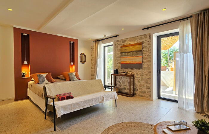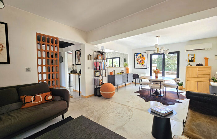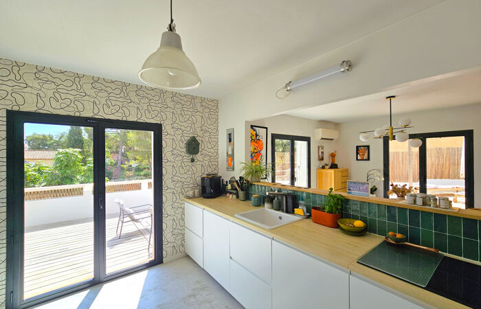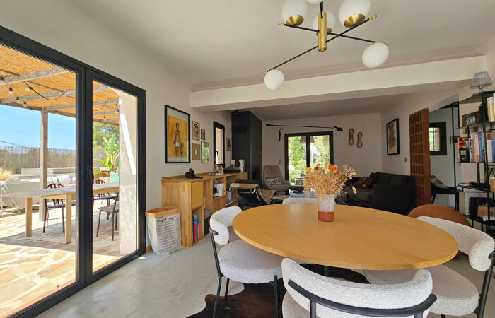 Dans un environnement calme entre mer et Esterel, découvrez cette belle villa de charme entièrement rénové au sein d'un domaine privé à quelques pas de la plage et profitant de quelques échappées sur la mer. Ce bien atypique, dispose d'une surface de près de 300m2 sur une parcelle de 1073m2 arborée et confortable d'accès. La villa, en 2 espaces, bénéficie d'une multitudes de terrasses, d'un séjour avec cuisine ouverte, d'une seconde cuisine pour les invités, de 5 spacieuses chambres aménagées en véritables suites, ainsi que d'un atelier et d'une grande cave. Les volumes offerts par cette belle propriété donnent la possibilité d'accueillir une famille nombreuse ou des chambres d'hôtes.