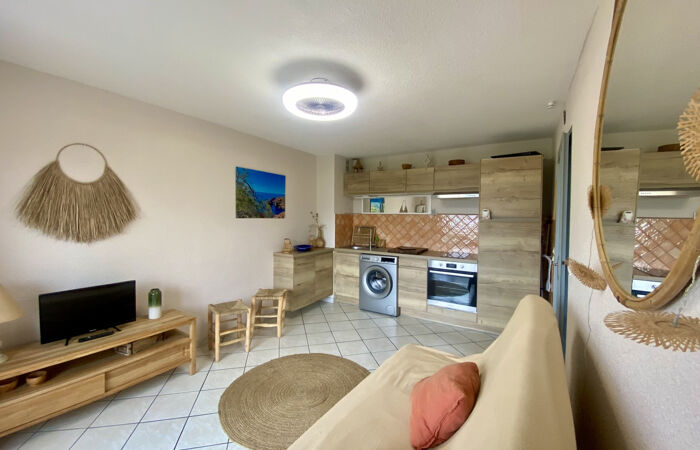 Situé dans une résidence fermée à quelques pas de la plage du TIKI, ce bel appartement de 2/3 pièces a été complétement rénové il y peu. Il bénéficie d'une belle terrasse offrant une vue sur la mer et sur la verdure environnante.