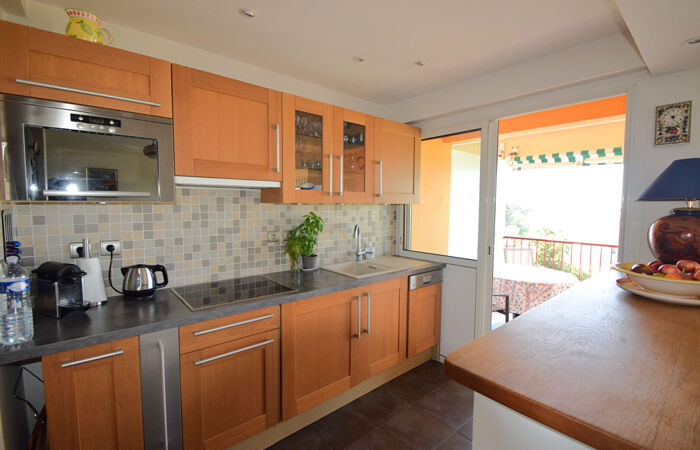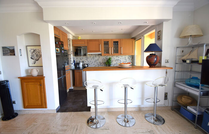 ST RAPHAEL, Boulouris. Coeur de village, à 100 mètres des commerces et 300 mètres des plages. Exceptionnelle situation pour cette résidence sécurisée, au calme et dans la verdure. Superbe 2/3pièces en dernier étage offrant une très jolie vue mer et verdure. Celui-ci se compose d'une entrée avec vestiaire, d'une cuisine américaine équipée, d'un beau séjour, d'une chambre avec placard, d'une salle d'eau avec wc, d'une chambre cabine avec rangement puis d'un wc indépendant. Le tout est en excellent état et ultra lumineux. Toutes les pièces ont accés sur une vaste terrasse sud. Toutes les prestations proposées sont très actuelles. Vous bénéficierez d'une cave en sous-sol ainsi que d'un parking privatif. C'est un réel coup de coeur de par sa situation, son état général ainsi que l'environnement immédiat. Affaire rare sur le quartier.