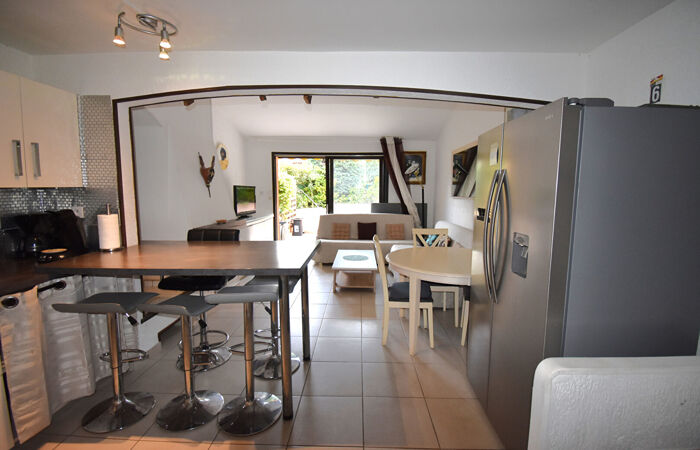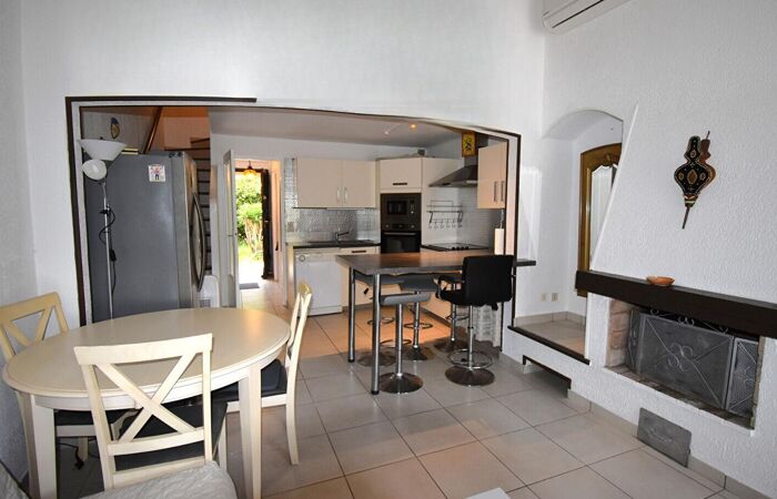 ST RAPHAEL. Bord de mer. Résidence fermée avec piscine. Bastidon de 3 pièces avec grande terrasse sud et parking privé. Situation privilégiée à 50 mètres des plages. Idéal vacances. Excellent état général, belle luminosité. Rénovation récente. Celui-ci se compose d'une entrée, d'un wc d'invités, d'une belle cuisine américaine équipée, d'un salon avec cheminée donnant sur terrasse, d'une chambre de plain pied. Vous trouverez une seconde chambre à l'étage avec salle d'eau et wc.