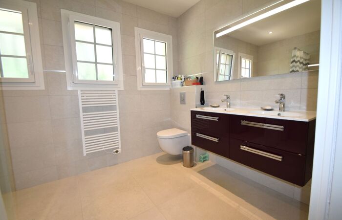 Bel appartement 4 pièces de 133 m² dans un environnement particulièrement privilégié au grand calme. L'appartement comprend entrée, cuisine indépendante, vaste salle à manger séjour, 3 chambres, 2 salles d'eau, 2 WC, 1 buanderie. Votre agence Millésime Immobilier de Boulouris vous propose cet appartement bénéficiant d'une belle luminosité grâce à son exposition Sud et ses grandes baies vitrées. Il offre un confort optimal grâce à des prestations qualitatives telles que la climatisation réversible, l'ascenseur, un car port et la piscine. Situé à moins d'1km de la mer, ce bien vous promet une belle surprise. N'hésitez pas à venir le découvrir !