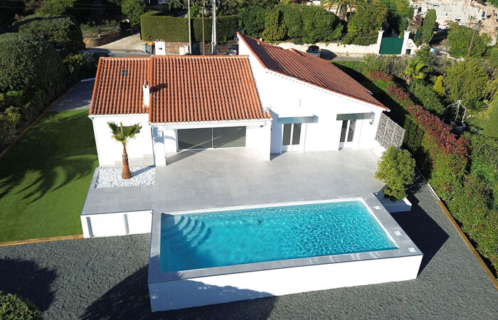 Dans le très beau quartier de Boulouris, villa intégralement rénovée avec goût alliant confort, lumière, calme et modernité. La villa, entièrement de plain pied, se compose d'une vaste pièce de vie inondée de lumière et profitant d'une vue magnifique sur la piscine grâce à de larges baies vitrées. On dispose également d'une cuisine équipée ouverte sur le séjour. Vous y trouverez un couloir desservant 2 chambres avec placard, une suite parentale avec son placard et sa salle de bains et son WC, une salle d'eau avec WC, un WC indépendant. La villa est équipée de la climatisation réversible. Une buanderie, un garage et des combles pouvant être aménagés viennent compléter le tout. Votre agence Millésime Immobilier de Boulouris vous propose cette villa au calme, sur un terrain de 1100 m² paysagé avec de nombreux stationnements possibles. Sa position dominante offre une belle vue dégagée jusqu'à la mer.