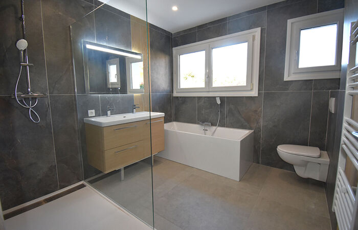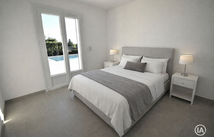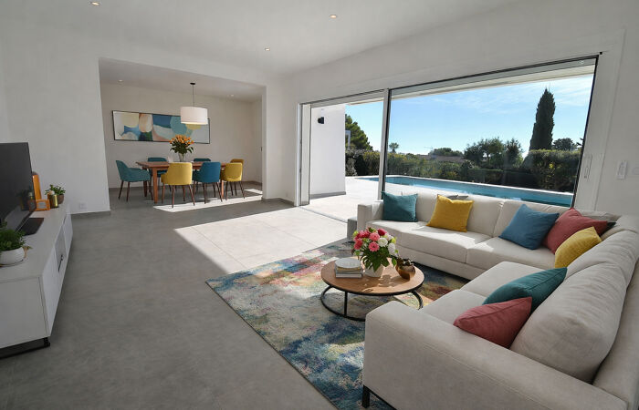 Dans le très beau quartier de Boulouris, villa intégralement rénovée avec goût alliant confort, lumière, calme et modernité. La villa, entièrement de plain pied, se compose d'une vaste pièce de vie inondée de lumière et profitant d'une vue magnifique sur la piscine grâce à de larges baies vitrées. On dispose également d'une cuisine équipée ouverte sur le séjour. Vous y trouverez un couloir desservant 2 chambres avec placard, une suite parentale avec son placard et sa salle de bains et son WC, une salle d'eau avec WC, un WC indépendant. La villa est équipée de la climatisation réversible. Une buanderie, un garage et des combles pouvant être aménagés viennent compléter le tout. Votre agence Millésime Immobilier de Boulouris vous propose cette villa au calme, sur un terrain de 1100 m² paysagé avec de nombreux stationnements possibles. Sa position dominante offre une belle vue dégagée jusqu'à la mer.