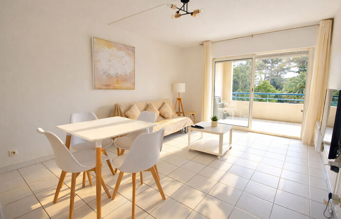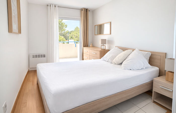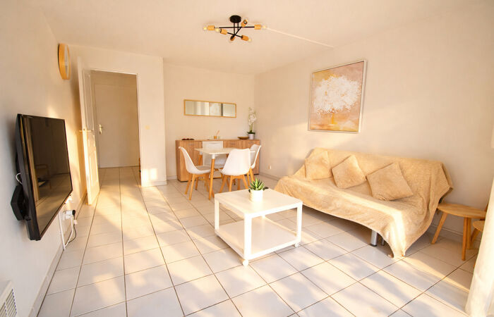 Dans une résidence calme et de qualité. Bel appartement de 2 pièces traversant offrant une double exposition ainsi qu'une vue dégagée. Celui-ci se compose d'une entrée, cuisine américaine équipée, salon-séjour donnant sur terrasse, une chambre avec placard et salle de bains, wc indépendant. Le tout est en excellent état général. Belle luminosité. Clim réversible. Vous bénéficierez également d'une cave. Il est possible d'acquérir un garage en supplément.