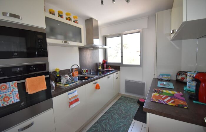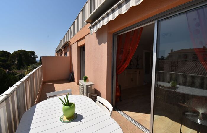 Boulouris. A 100 mètres de la plage et des commerces. Au calme. Appartement 2 pièces de 42 m² plus terrasse sud-est offrant une jolie vue dégagée jusqu'à la mer. L'ensemble est en excellent état. Le bien est confortable et très lumineux. Il se compose d'une entrée avec placard, d'une cuisine indépenadante entièrement équipée, d'un salon-séjour donnant sur terrasse de 12 m², d'une chambre avec placard donnant sur terrasse également, d'une salle de bains et d'un wc indépendant. Climatisation, volets électriques, baies alu. Un parking complète l'ensemble. C'est un coup de coeur de par sa situation et son confort appréciable.