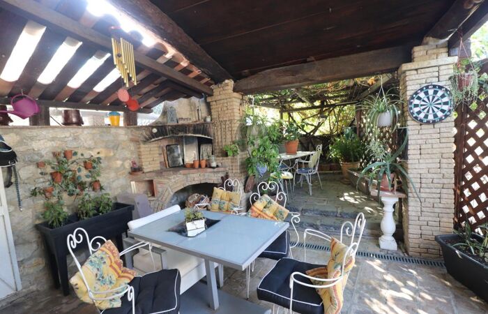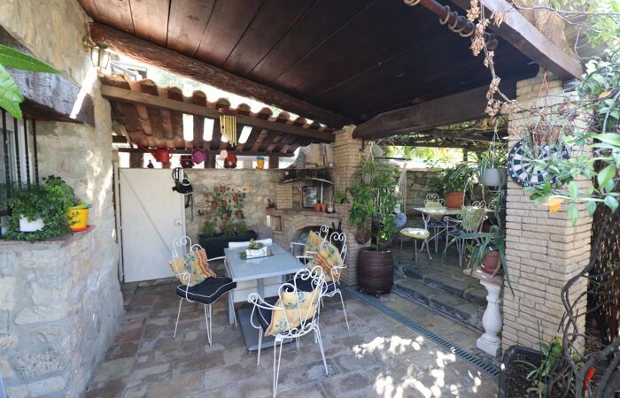 La maison dispose d'une terrasse couverte avec un barbecue, un petit cabanon.