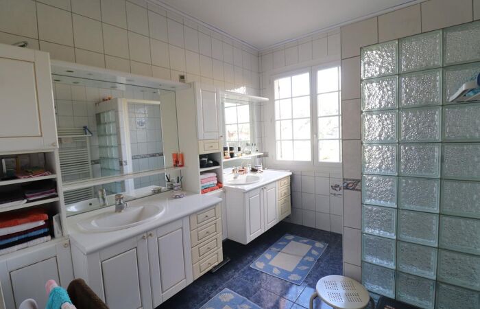 La maison dispose d'une grande cave, d'un garage et de 2 places de parking couverte.