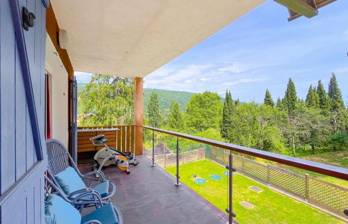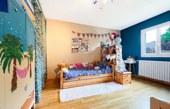 Au rez de chaussée, sur une surface de 122 m², vous trouverez une entrée avec wc indépendant, une cuisine semi ouverte, un salon / salle à manger de 35 m² avec cheminée, deux chambres et une salle de bain avec douche à l'italienne. Un escalier intérieur vous amène à l'étage inférieur (rez de jardin) où vous trouverez deux chambres, un bureau, un local technique et à l'extérieur l'accès à une cave/cellier.