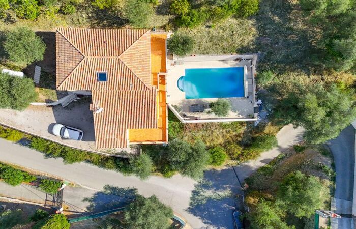 A l'extérieur un grand terrain de 2000 m2 sans vis-à-vis, entouré de verdure et d'oliviers parfait pour les jeux, le jardinage ou les repas en plein air et une grande piscine sécurisée.