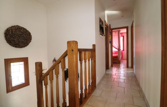 - A l'étage : un dégagement, quatre chambres avec rangements, un WC indépendant et deux salles de douche. Climatisation réversible, cheminée, chauffage au gaz de ville, portail électrique avec visiophone.