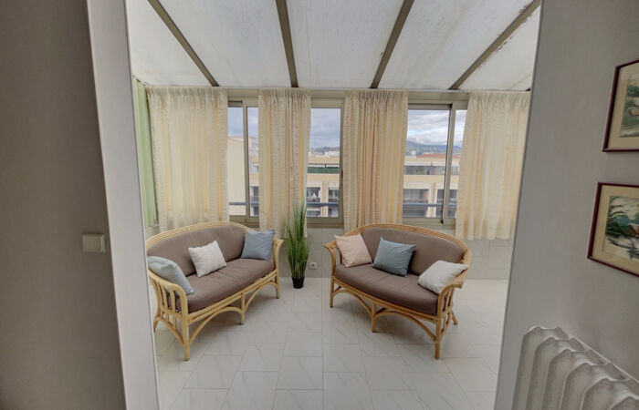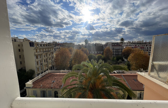 NICE CENTRE, Carré d'or, rue du Congrès, Unique sur le marché !! Proche de la Promenade des anglais, et de toutes commodités, superbe appartement 2 Pièces de 61 m2 au dernier étage , 46,5 m2 + véranda 13.5 m2, traversant avec une exposition Nord-Sud, vue panoramique ville, calme, soleil, résidence de très bon standing, DPE:D-214 et GES:D-46, charges annuelles : 2000 EUR (chauffage et eau inclus) copropriété de 44 lots dont 36 appartements, honoraires d'agence inclus 5% TTC à la charge de l'acquéreur, info des risques naturels sur www.georisques.gouv.fr