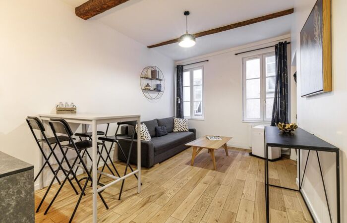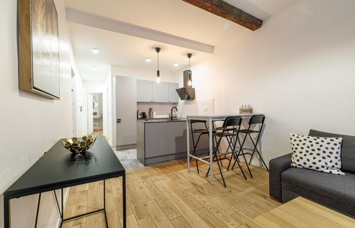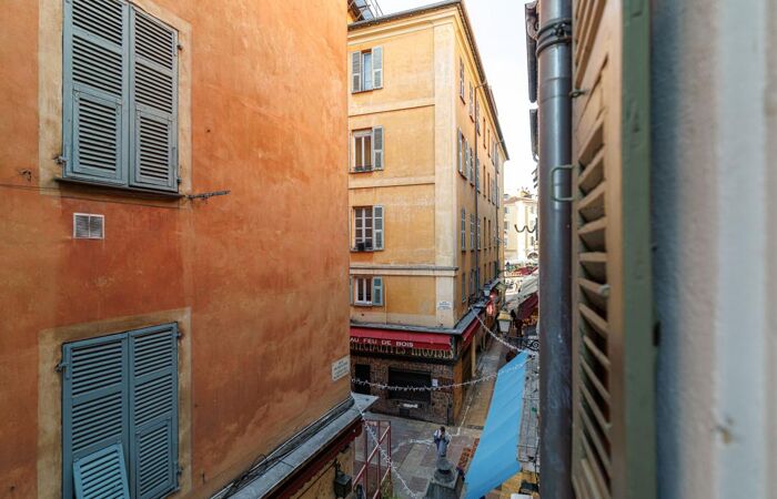 Nice // Vieux Nice - À deux pas de la place Garibaldi, du Cours Saleya et du Port, découvrez ce superbe deux-pièces de 40 m² entièrement rénové. Situé au sein d'un immeuble typiquement niçois, il offre un beau séjour avec cuisine ouverte aménagée et équipée, une salle de douche moderne avec WC, ainsi qu'une chambre avec rangements.