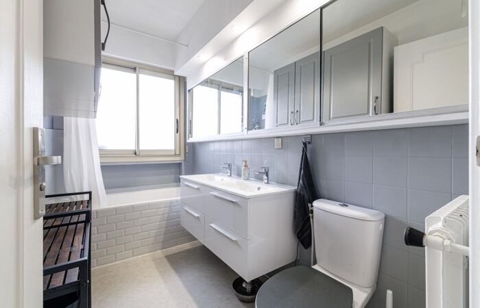 L'appartement bénéficie également de la climatisation, du double vitrage et d'une belle hauteur d'étage, garantissant calme et luminosité tout au long de la journée.