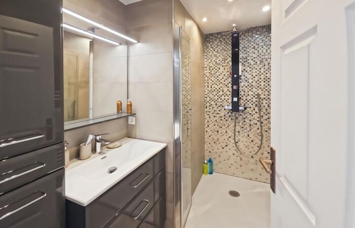 L'espace nuit, parfaitement séparé, offre un confort absolu avec une suite parentale et sa salle de douche, deux belles et grandes chambres et une salle de bains avec WC.