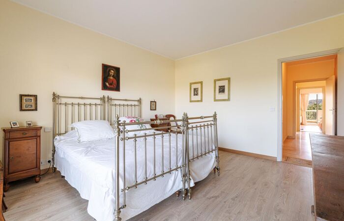Trois grandes chambres dotées de larges baies vitrées coulissantes ouvrant sur la terrasse, dont une somptueuse suite parentale avec balcon privatif et vue imprenable sur la piscine et le parc.