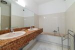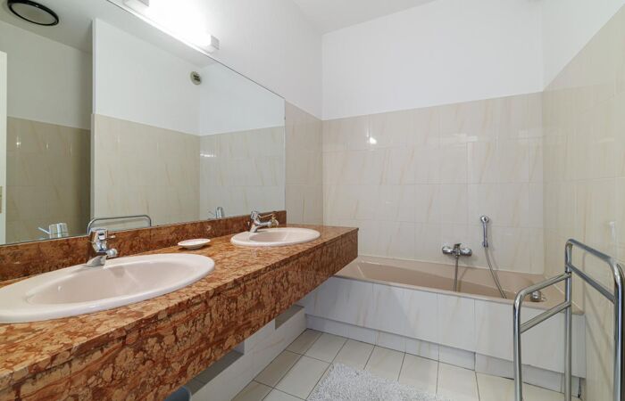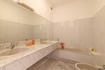 Deux salles de bains modernes équipées de doubles vasques, offrant confort et praticité.