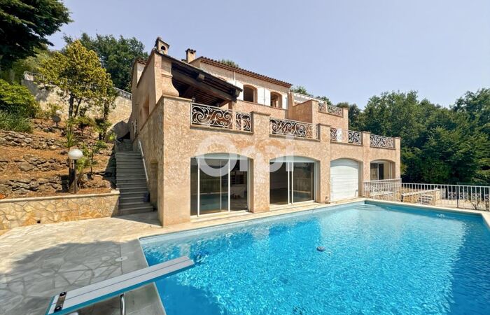 À quelques minutes du village de Saint-Paul-de-Vence, superbe villa de 380 m² sur un terrain de 2 500 m² avec piscine et terrasses ensoleillées.