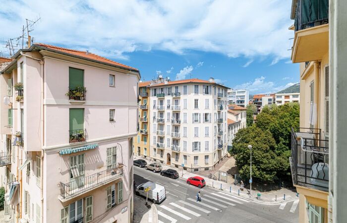 Situé au 4ᵉ et dernier étage d'un immeuble niçois (sans ascenseur), cet appartement traversant offre une belle pièce de vie baignée de lumière, une cuisine indépendante entièrement aménagée et équipée avec accès à un balcon, une chambre confortable, une salle d'eau ainsi que des WC séparés.