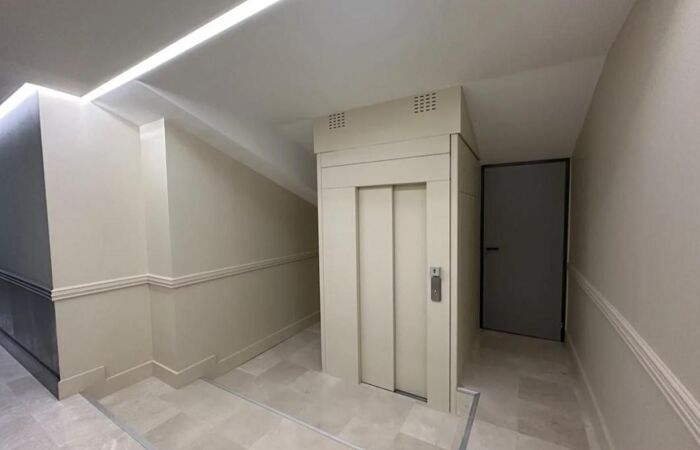 Dans un magnifique immeuble bourgeois, situé au 5ème et dernier étage avec ascenseur.