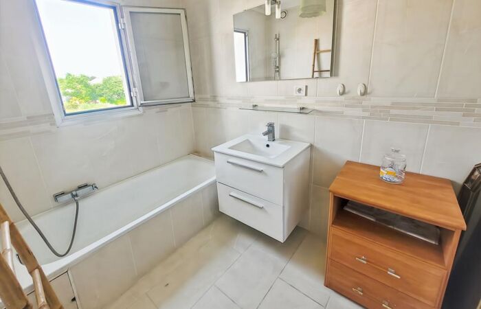 La salle de bains, bien agencée, dispose d'une fenêtre, garantissant une bonne ventilation naturelle. Vous trouverez également un wc indépendant, pour plus de confort ainsi qu'un dressing.