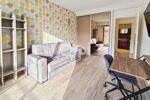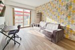 La pièce de vie, agréable et baignée de lumière, s'ouvre sur une terrasse prolongée par un balcon filant, offrant un véritable espace extérieur.