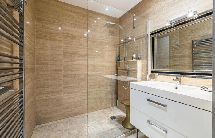 Sa grande terrasse exposée sud offre une belle vue mer.