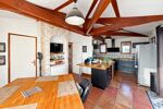 Belle Exposition SUD OUEST. Elle se compose au niveau 1 d'une belle entrée, un séjour en cathédrale avec poutres apparentes, une Cheminée, une grande cuisine indépendante avec coin repas et entièrement équipée. wc invités.