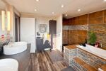 Niveau intermédiaire : Quatre chambres avec placards une grandes salle de bains avec douche à l'italienne et baignoire. Buanderie , un salle de douche et un wc indépendant.