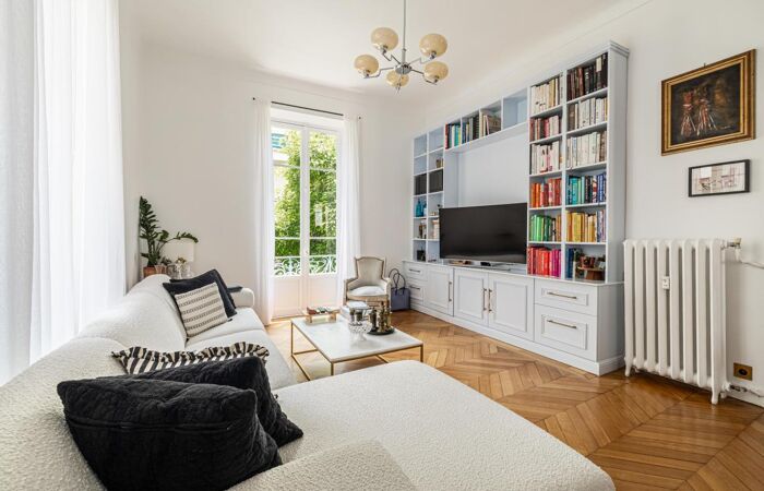 Très belle réception de 40m² incluant la cuisine, donnant sur un balcon .