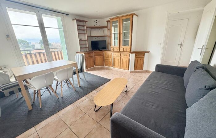 Dans une résidence sécurisée, très beau 3 pièces meublé au 3 étage sans ascenseur comprenant : un hall d'entrée, un beau séjour avec terrasse avec vue dégagée et aperçue mer, une cuisine indépendante aménagée donnant sur la terrasse, 2 chambres avec placards, une salle de bain et un WC indépendant.